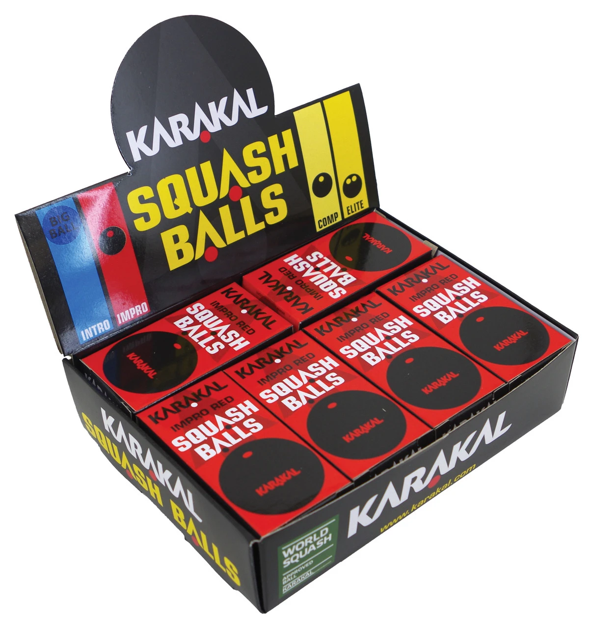 Karakal Squash Balls Red Dot are medium speed for intermediates, coaches and improvers. Non marking rubber. WSF Approved.