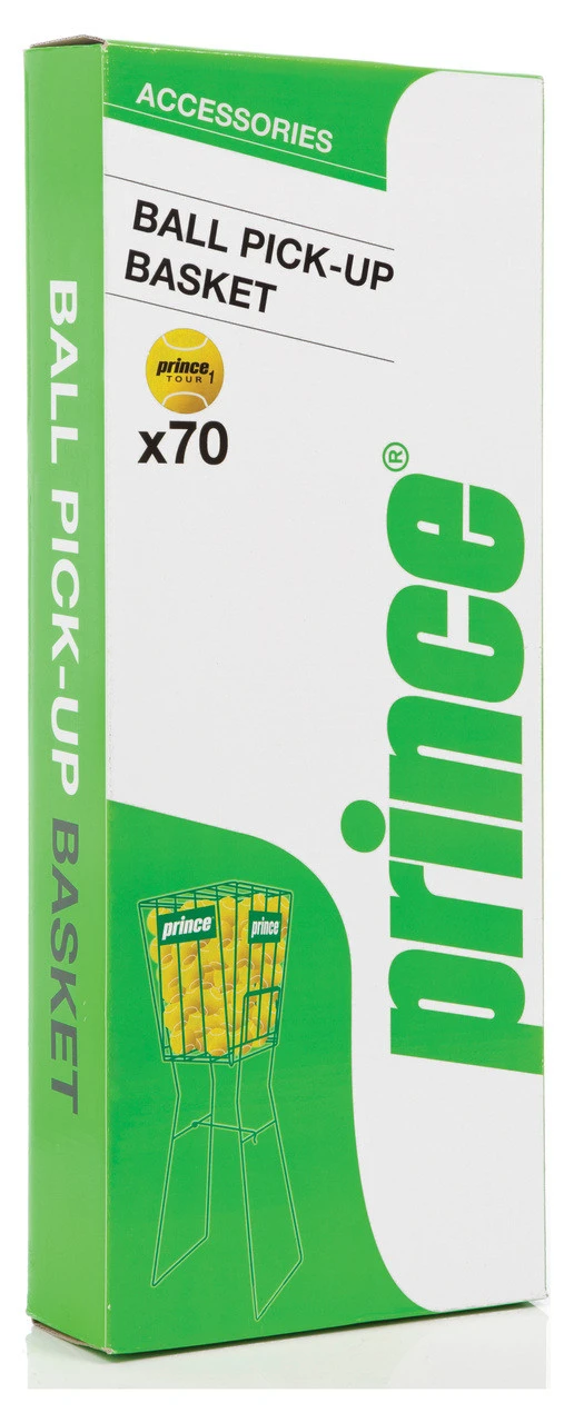 Prince 70 Tennis Ball Basket has two carrying handles which flip over to a standing position. Attached lid included for a 70 ball capacity.