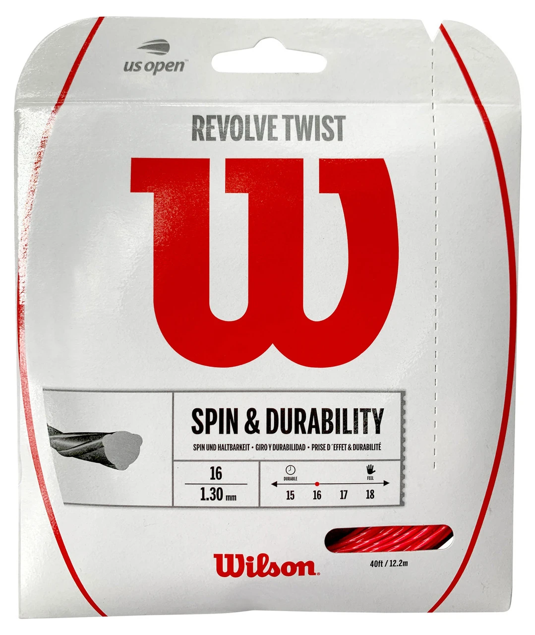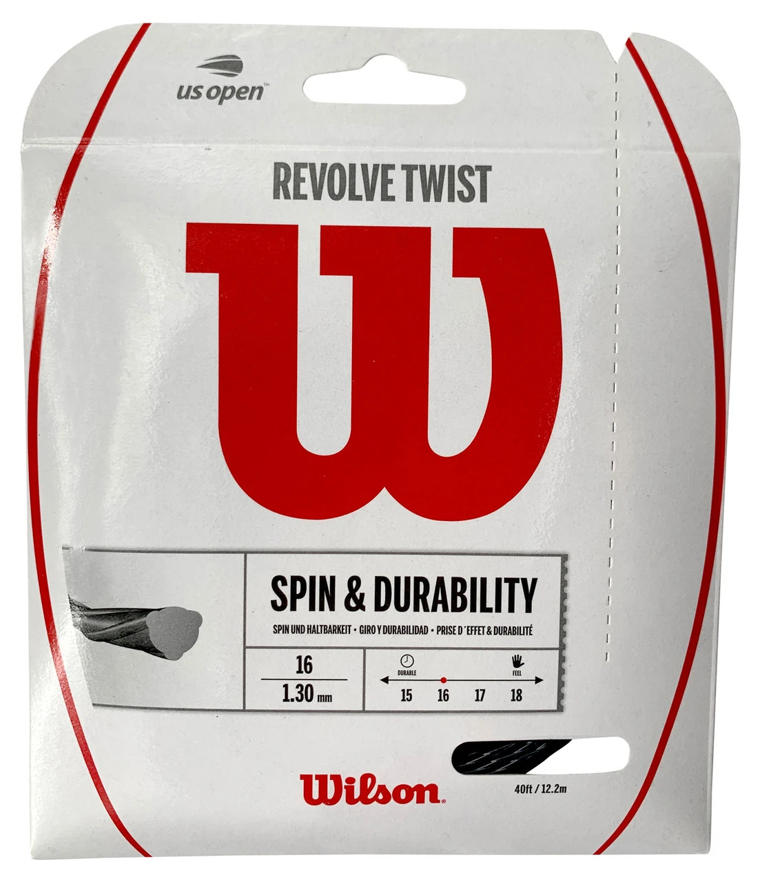 Wilson Revolve Twist is a polyester string which has been created to enhance spin and control. Created using co-polyester monofilament.